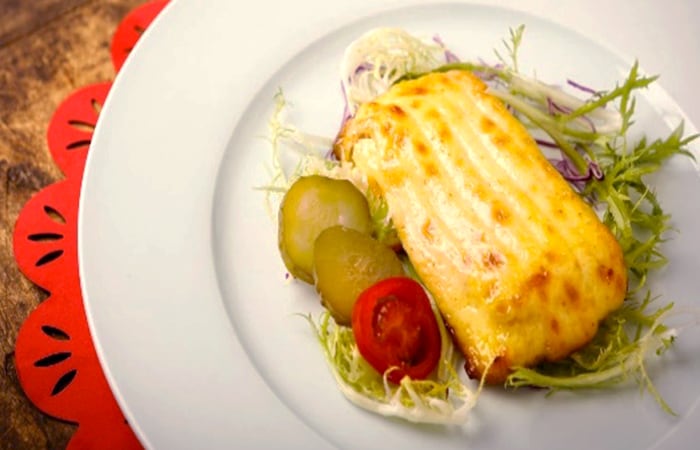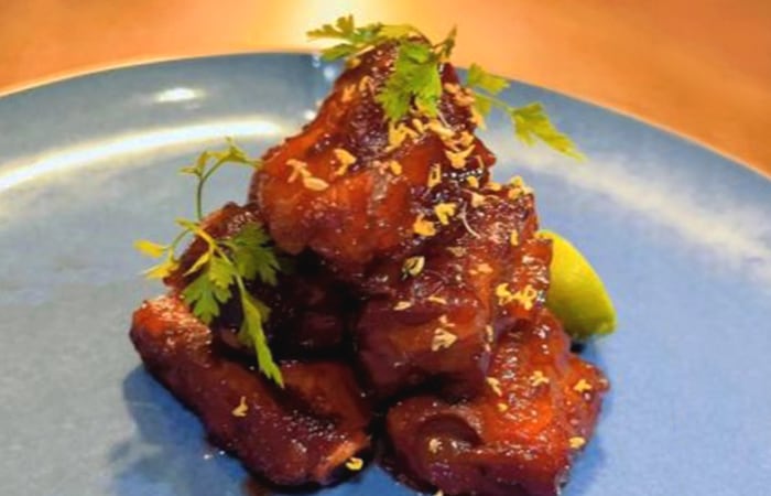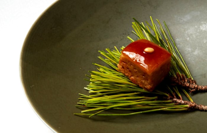 嫩煎梅花肉佐豉油沙茶红酒汁配野山蒜