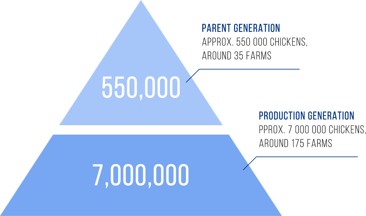 All parent chickens are cared for by a health care veterinarian. Farms actively participate in the prevention of animal diseases by regularly monitoring the health status of animals with blood samples and other sampling when necessary.